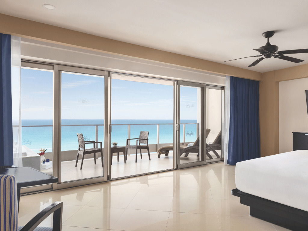 Nuestra Ocean Front Doble Suite, te sitúa justo frente al mar, con dos camas dobles y un jacuzzi exterior en el balcón. Es perfecta para 4 personas, permitiendo que tu familia o amigos disfruten de las increíbles vistas y la brisa marina.